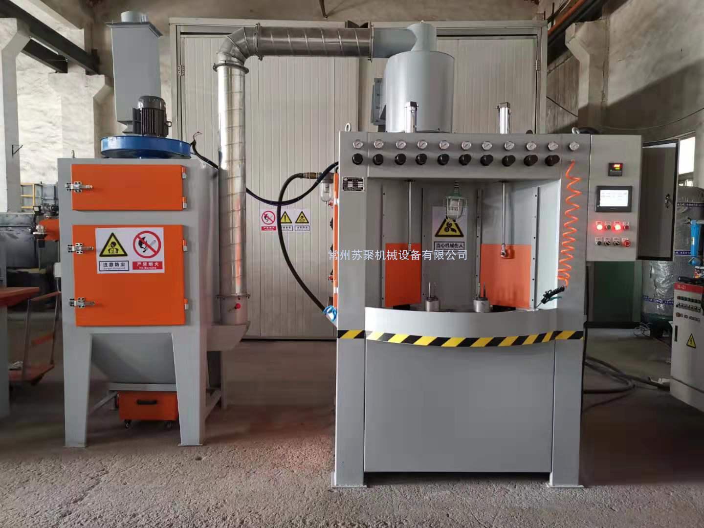 噴砂機廠(chǎng)家立式彈丸噴射式冷凍噴砂機必須采用高性能的電機部件,以保證可以帶動(dòng)拋噴砂機射輪以小于7200轉/分鐘的轉速將彈丸拋射出,以擊打掉制品毛邊。在高速運轉下,拋射輪的動(dòng)平衡誤差不能高于3mm,否則會(huì )造成電機因負荷運轉而導致壽命大幅度減少。