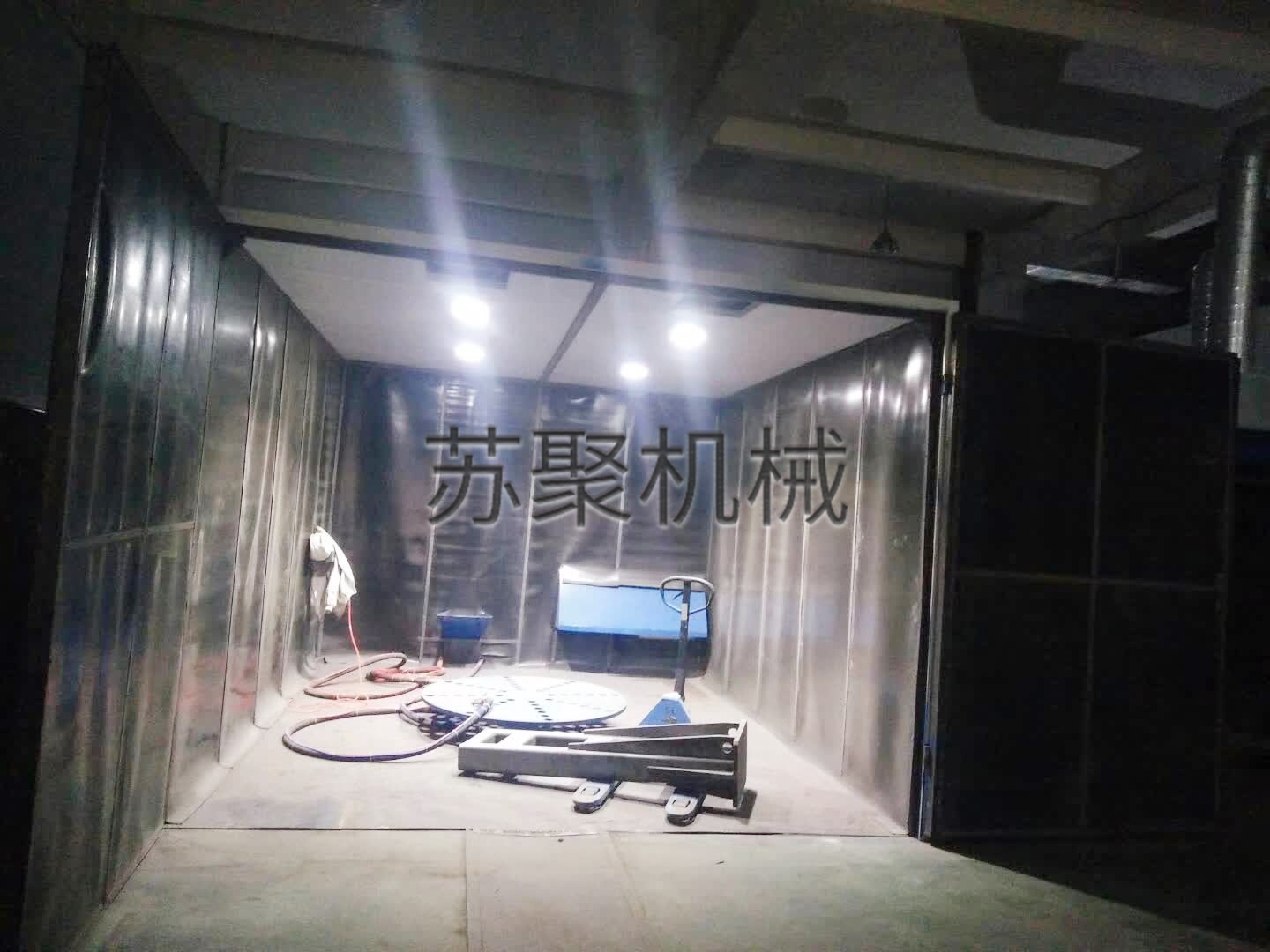 自動(dòng)機械式回收噴砂(丸)房為平車(chē)往復式專(zhuān)用噴丸機,它由噴丸室體、噴丸器、螺旋輸送機、提升機、分離器、彈丸控制系統、照明系統、除塵系統、輸送平車(chē)、電控系統等部分組成。