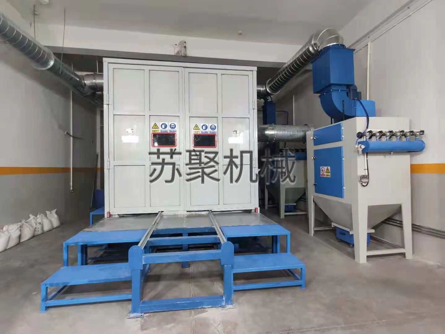 7.噴砂房體采用鋼板焊接制造,經(jīng)久耐用,外形簡(jiǎn)潔美觀(guān),安裝便捷靈活,內壁襯5mm聚氨酯板;